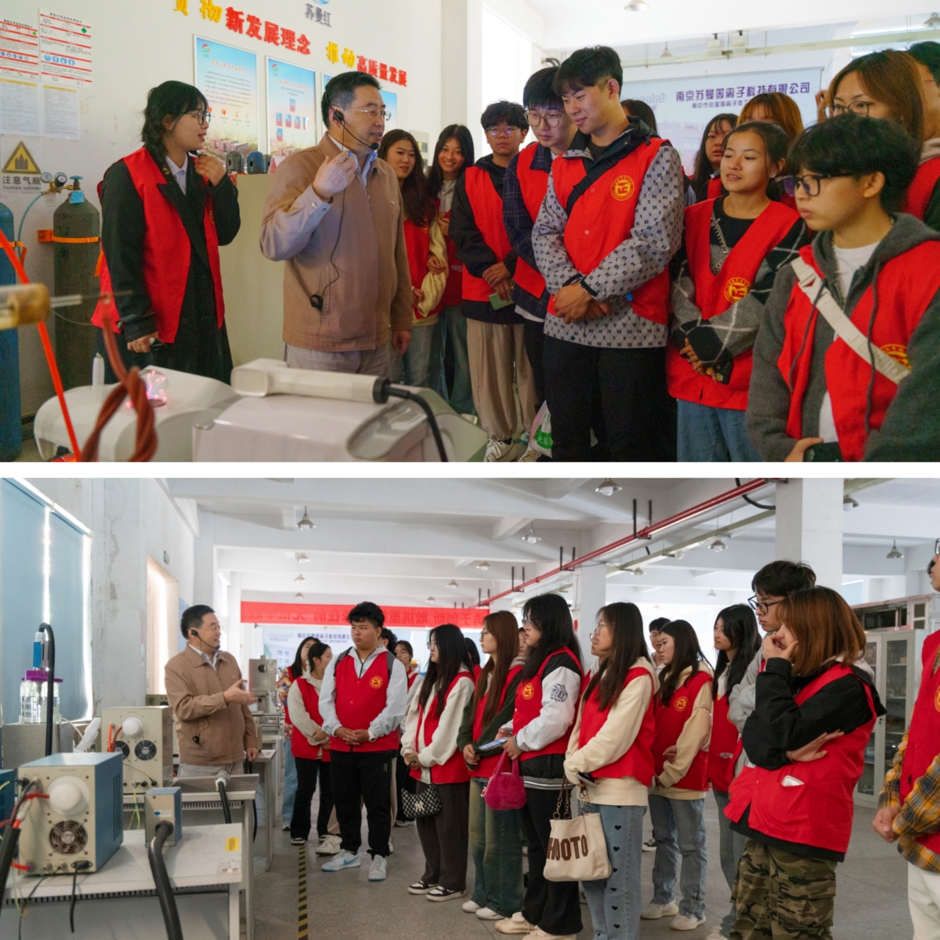 看一家高新企业。南京苏曼等离子有限公司是江苏省民营科技企业,双软企业,低温等离子体工程技术麻豆传媒 中心,江苏省麻豆传媒 生企业工作站。在企业负责人的讲解和演示下,同学们对等离子技术有了更直观的感受,进一步感知科教兴国、人才强国、创新驱动、乡村振兴发展战略,激发肩负使命、勇挑重担、开拓进取的学习热情。