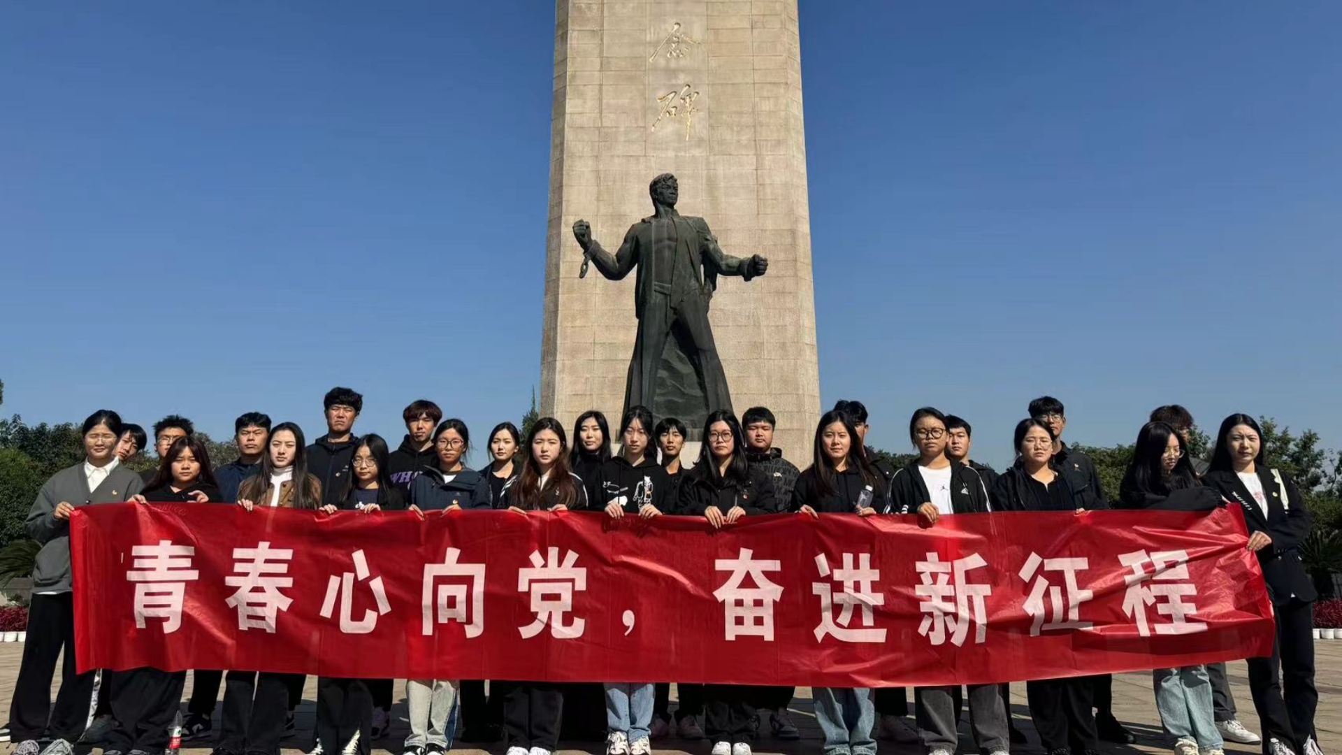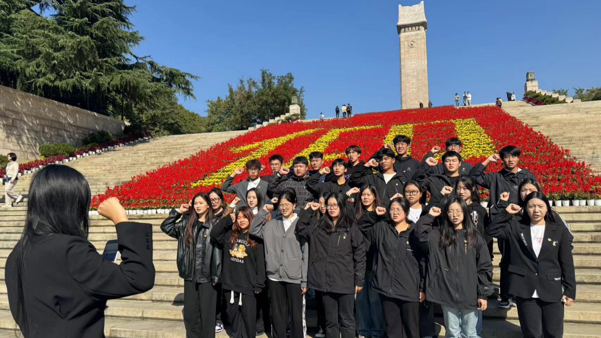 沿信仰大道拾级而上,是花岗岩贴面的雨花台烈士纪念碑,碑名由邓小平同志题写,碑上“日月同辉”标志象征着烈士精神与天地共存,与日月同辉。同学们在纪念碑前致敬英雄、缅怀先烈。最后在广场上,全体成员重温入团誓词。传承革命精神,赓续革命伟业,经管青年会一直奔走在实现中华民族伟大复兴的征途上。