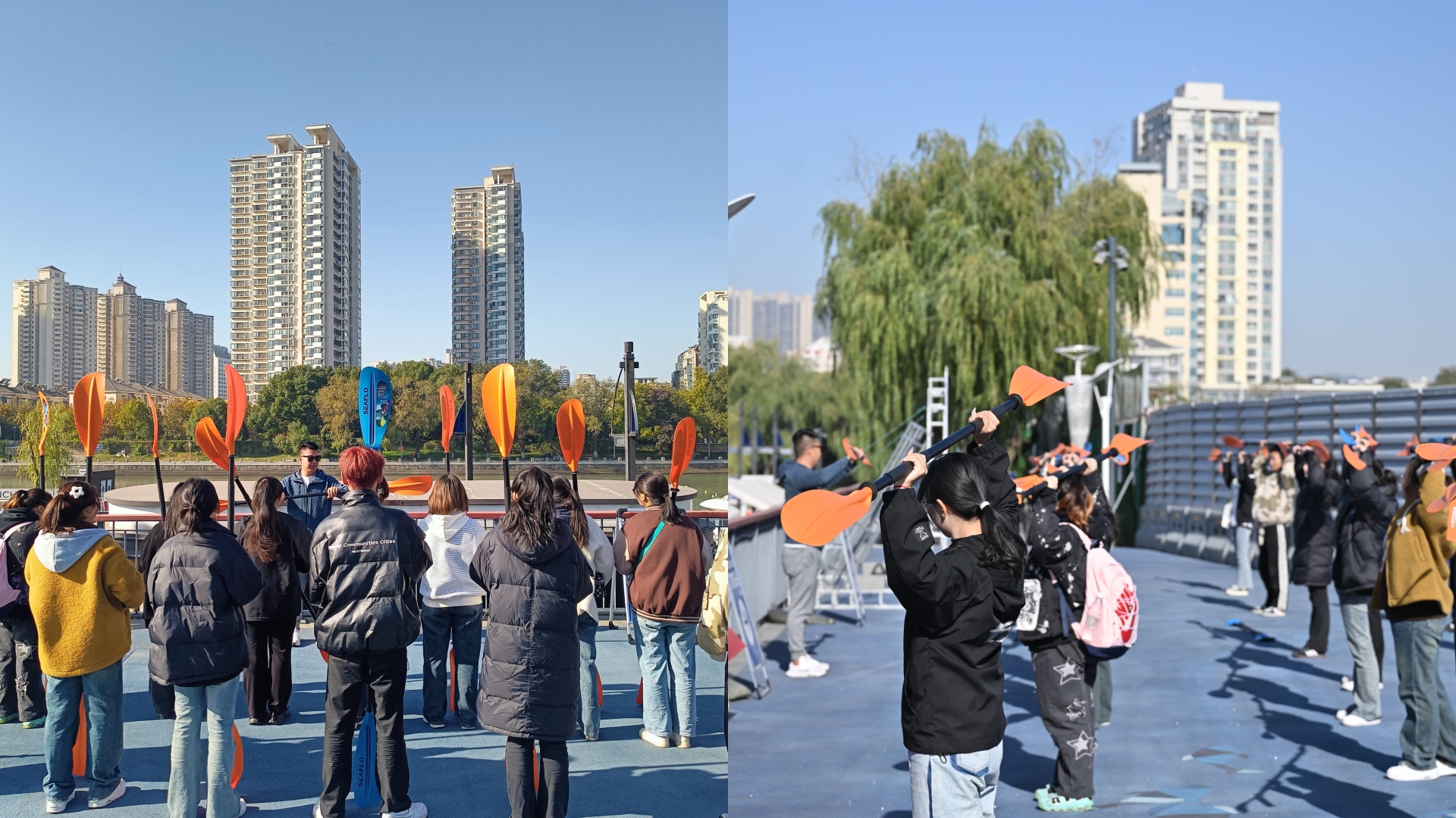 为了让青年在行走中陶冶情操,在运动中锻炼身体,在体验中增长见识,在市旅游集团的邀约下,11月19日,经济与管理系带领麻豆传媒 赴水木秦淮码头开展“皮一下,也艇好”皮划艇研学活动。