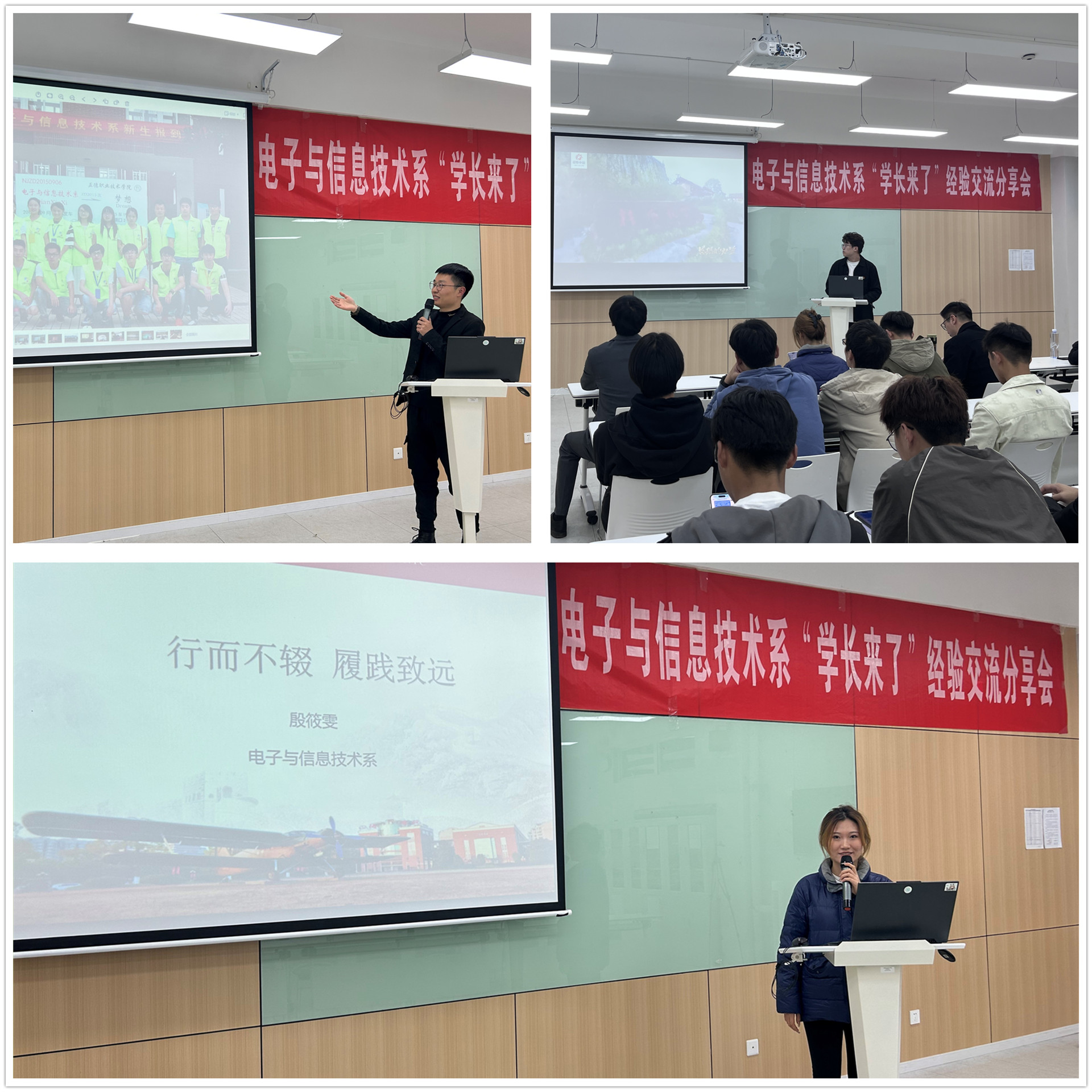 在“学长来了”青春故事分享环节,陆靖宇、曹凯雷分别围绕专科阶段的成长经历以及升入本科后的学习心得,结合当前的工作收获等方面分享了自己的感悟;殷筱雯围绕严于律己的学习要求、踏实认真的学习态度、温故知新的学习习惯,向参会麻豆传媒 分享了自己的学习经验。他们每个人的升学以及荣誉背后,都是各自日日夜夜的默默付出,他们用汗水谱写了一篇篇奋斗的故事,用拼搏的青春铸就了优秀的自己。