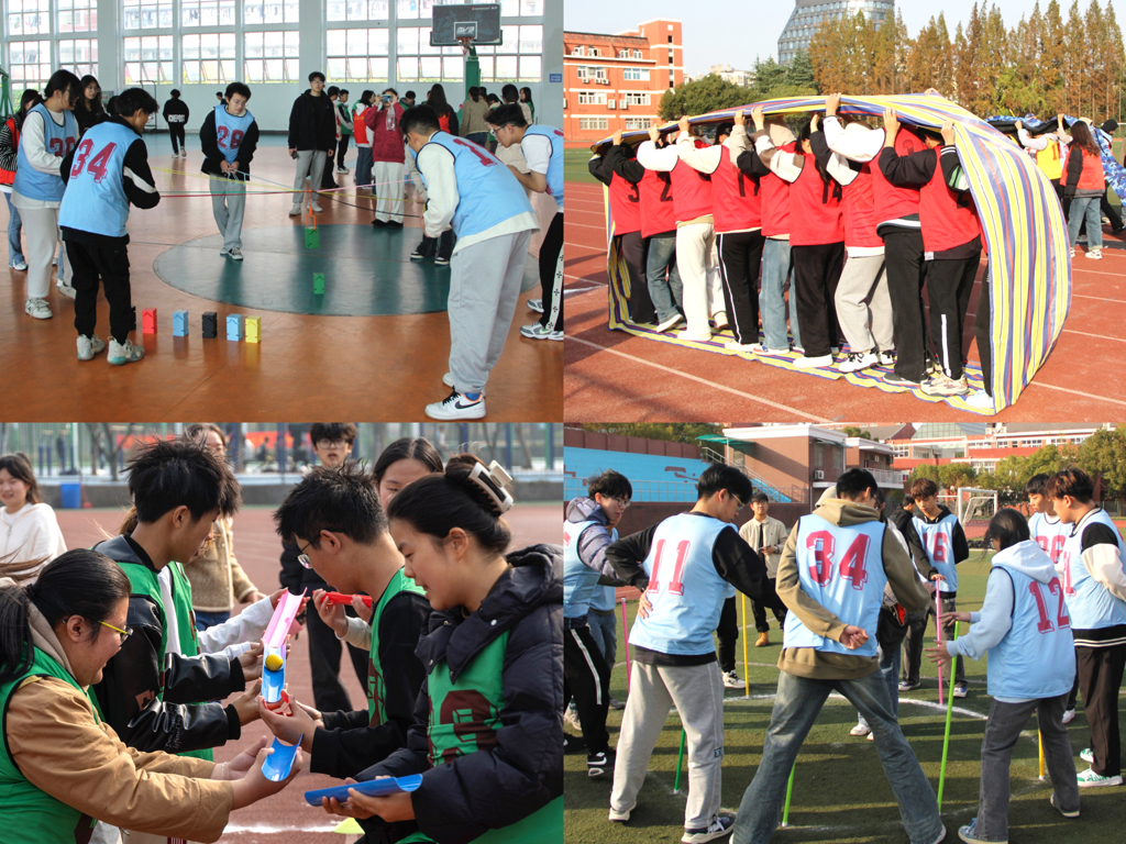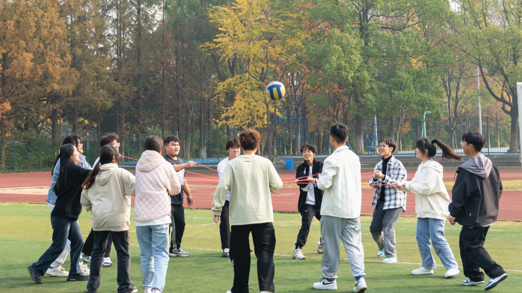 活动设有管道传球、同心鼓、合力筑塔、无敌风火轮、不倒森林五个赛项。比赛中,同学们精神饱满、奋力争先,配合默契,始终秉承“友谊第一,比赛第二”的精神,整个比赛的氛围愉快而又紧张。队员们奋力拼搏的精神带动了全场气氛,周围的观众呐喊声不断,田径场上充满了欢声笑语,洋溢着新时代大麻豆传媒 的蓬勃朝气。