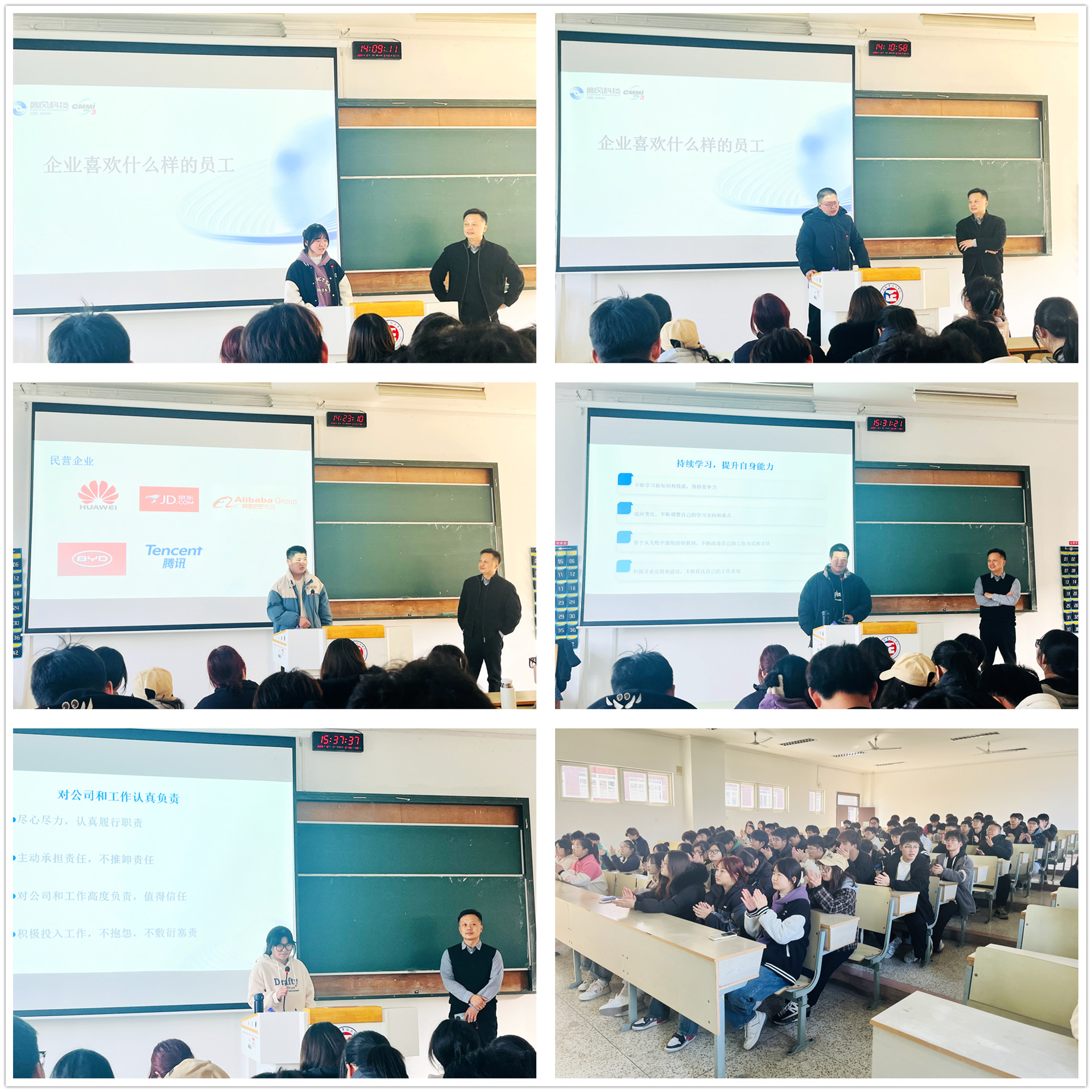 讲座中,陶露以《企业喜欢什么样的员工》为主题,向同学们分享了自己的工作经历和创业经历,从最初世界通信巨头富士通公司的学徒,到独当一面的项目负责人;从软件工程师转型到销售岗位,再成为高级管理人员,最后自主创业成为南京IT行业的领军人,陶露向同学们展示了他脚踏实地、积极向上的企业家风貌。本次讲座引起了同学们的极大兴趣,课堂上踊跃发言,陶露与同学们互动交流,一一解答了麻豆传媒 们的提问。活动尾声,部分麻豆传媒 代表还上台分享了此次活动的收获和感想。活动现场气氛十分热烈,取得了很好的效果。同学们纷纷表示此次讲座受益匪浅,对自己的职业规划有了更为清晰的认识和方向,在今后的学习和生活中,将不断努力学习,充实自己,为实现自己的梦想而不懈奋斗。
