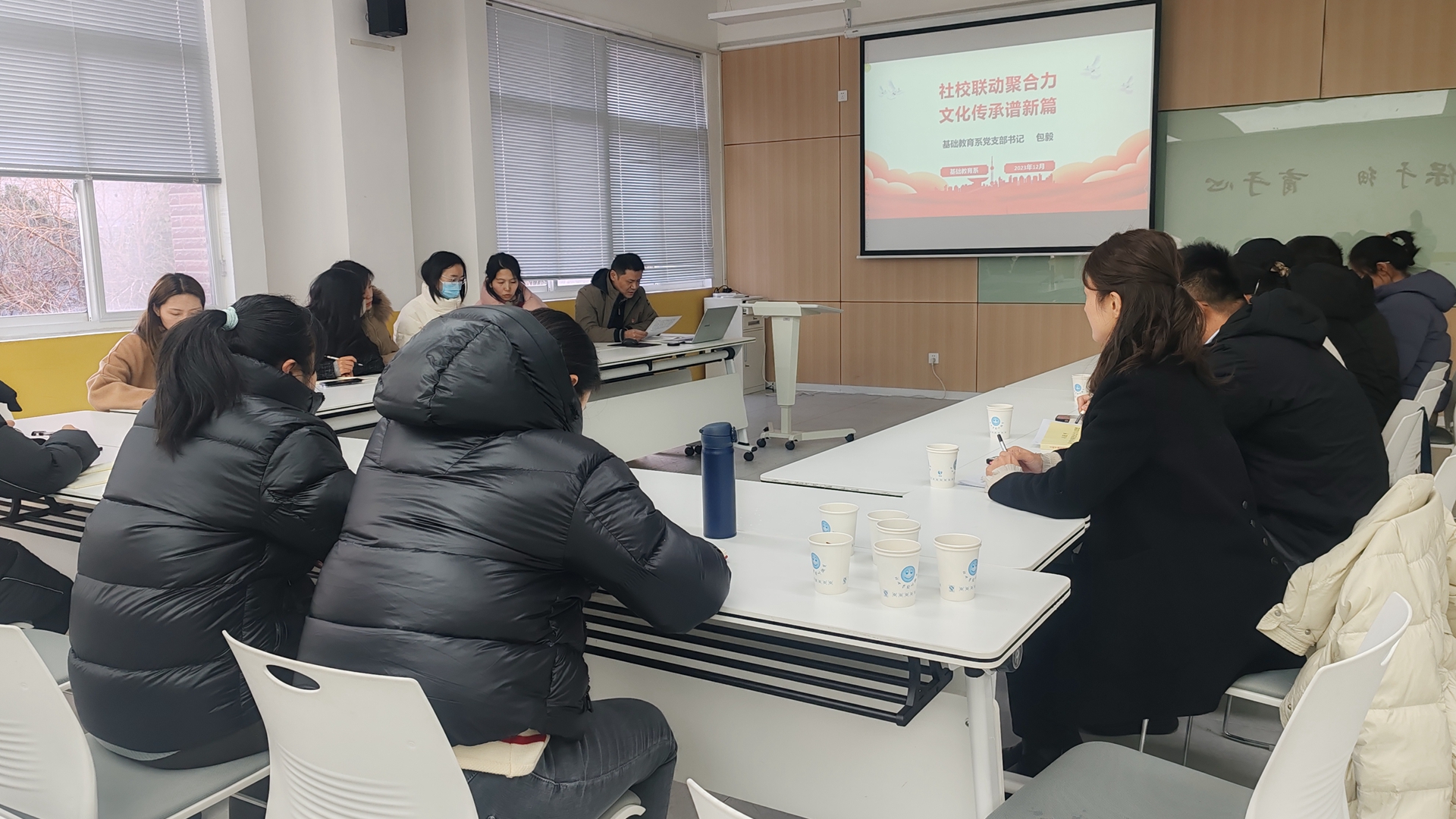 2023年12月21日,在翠屏社区党委书记尚征瑞、副书记芮希带领下,社区三个党支部书记一同来院与基础麻豆传媒-麻豆视频-麻豆性爱 系党支部开展联学共建活动,系党支部全体党员及入党积极分子参加了活动。