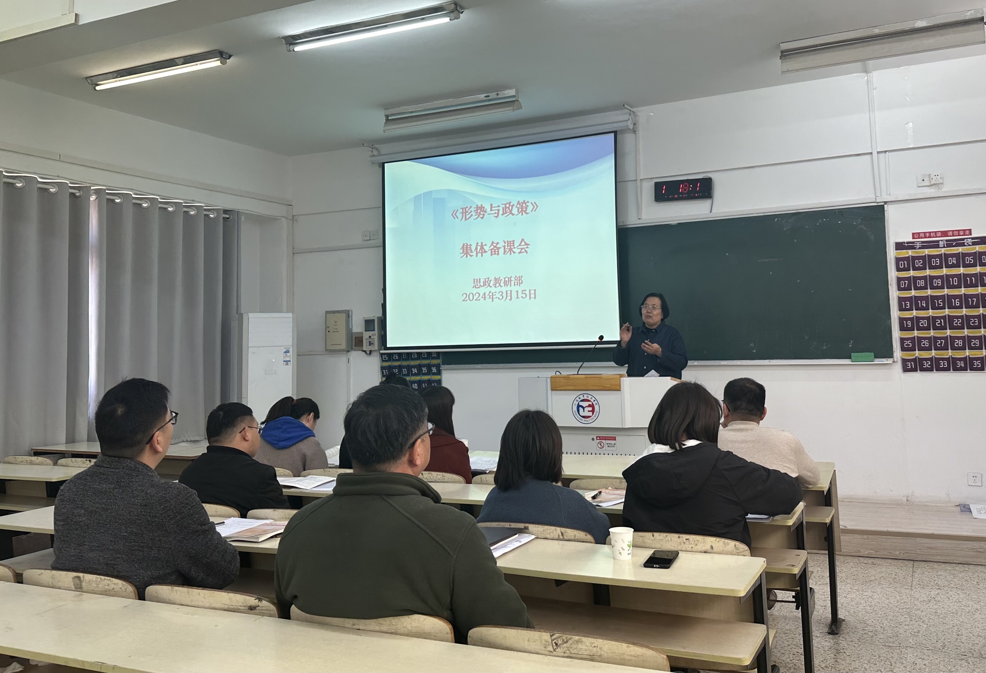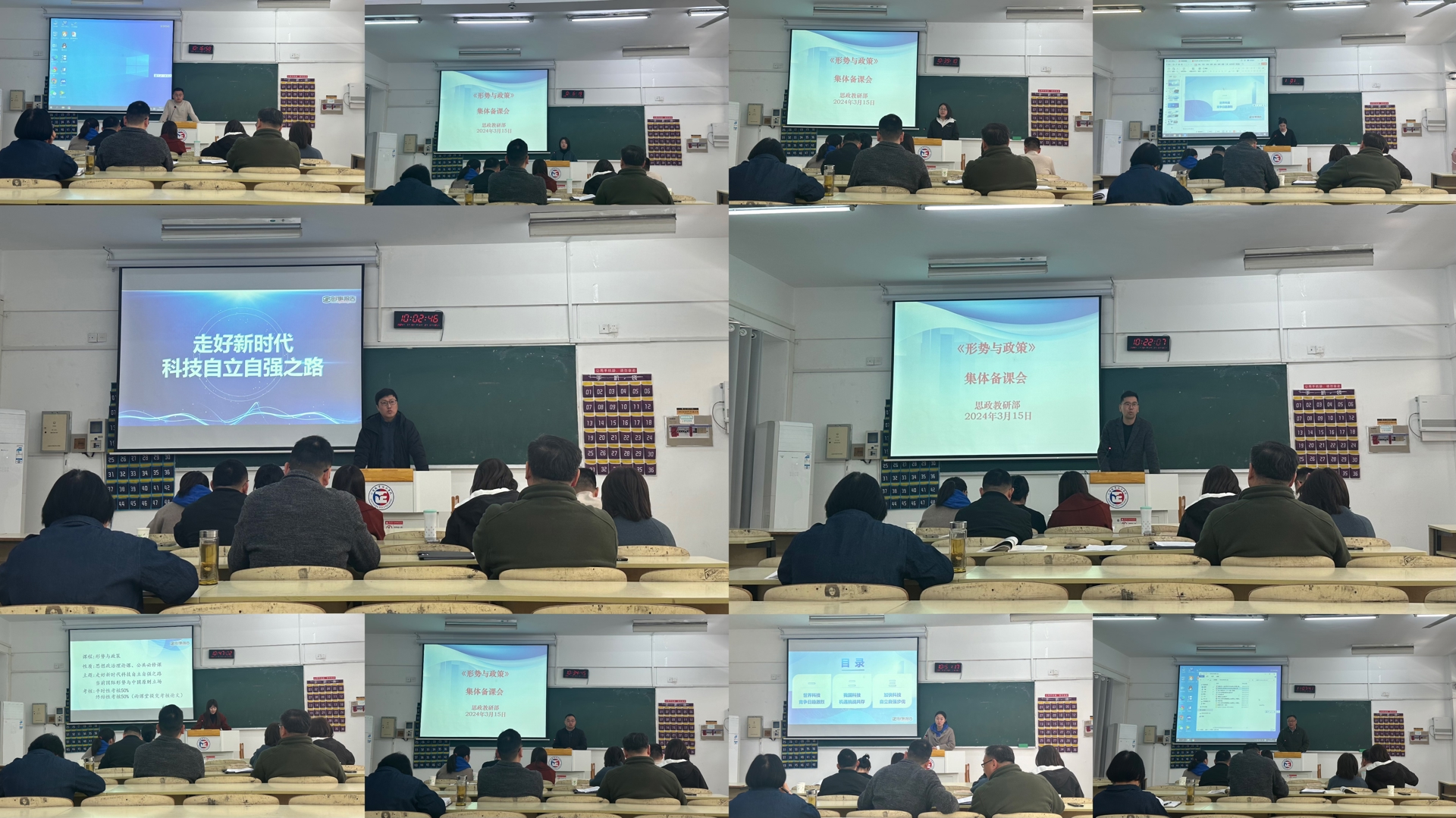 为贯彻落实麻豆传媒-麻豆视频-麻豆性爱 部对高校大麻豆传媒 课程的教学要求,进一步加强课程团队建设,保障本学期教学工作的顺利开展,麻豆传媒 于3月15日在2206教室开展《形势与政策》集体备课会。副院长江爱华、思政教研部副主任(主持工作)李颖、思政名师工作室苗秀娟教授、彭爱华教授及思政教研部全体教师进行现场观摩与指导。