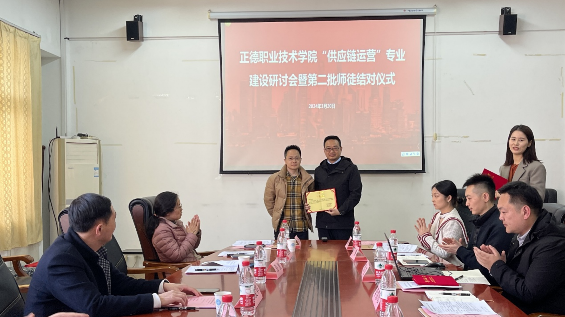 2024年3月20日,经济与管理系举行了“供应链运营”专业建设研讨会暨第二批师徒结对仪式。南京航空航天大学张钦教授、赵旭峰教授、章玲教授一行来系内访问交流,副院长江爱华、院长助理王墀、教务处处长王燕,经济与管理系主任李家唸及部分教师出席会议。