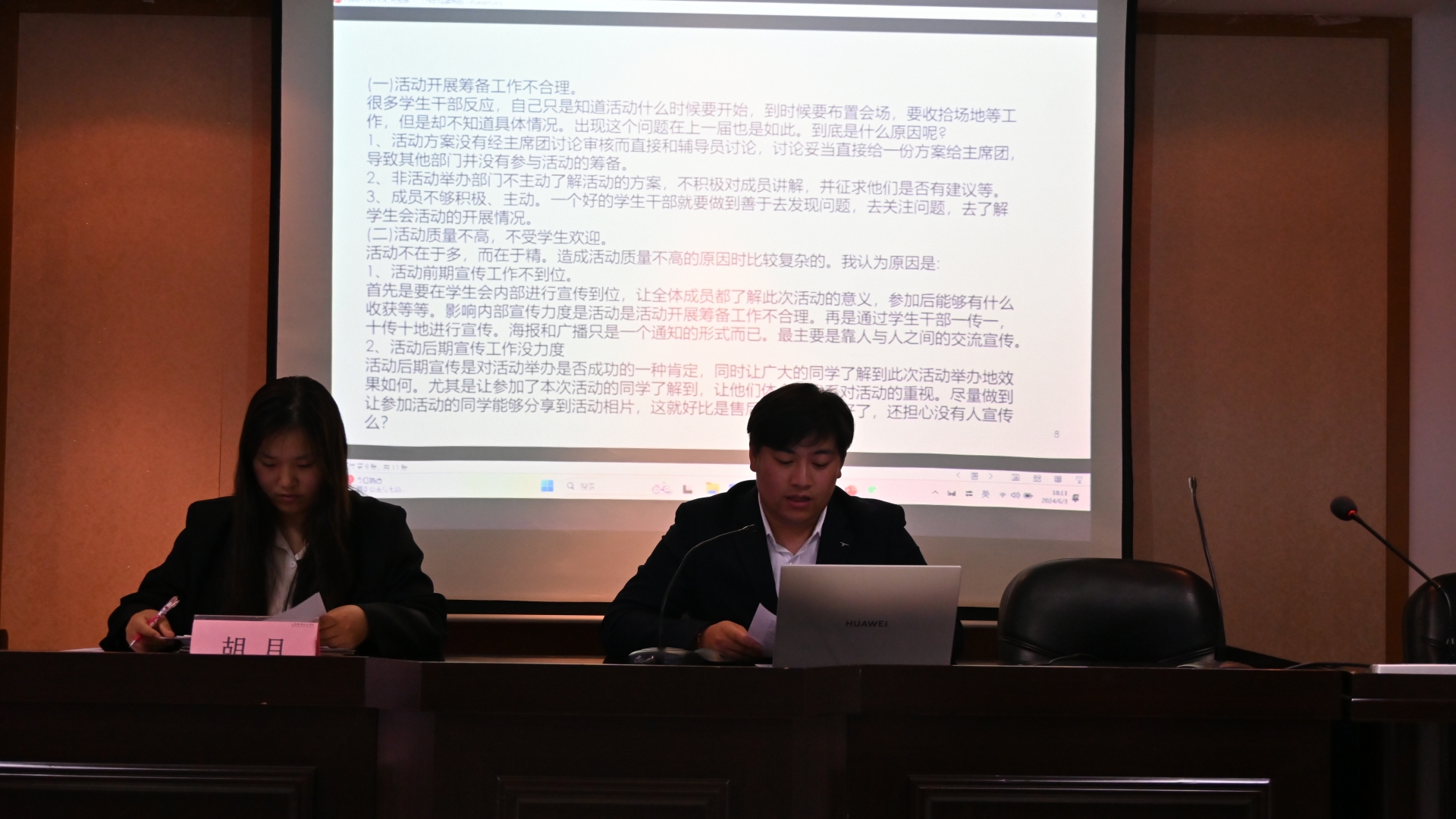 麻豆传媒 会及团总支各部门部长依次上台进行述职。在针对本学期部门发展进行回顾总结的基础上,着重体现团队工作要点与个人能力提升,对现阶段的问题进行总结反思并提出了下一阶段工作的解决方案。本次述职体现了各位麻豆传媒 干部对部门工作内容的深入了解以及他们认真负责的工作态度,同时也显露出他们对经济与管理系各部门未来发展的深切关怀与期待。麻豆传媒 干部们卓越的风采为经济与管理系麻豆传媒 会及团总支各部门的日常工作运转提供了充分的保证。最后刘妍为部门成员、部门干事及负责人颁发相应的奖状与聘书。