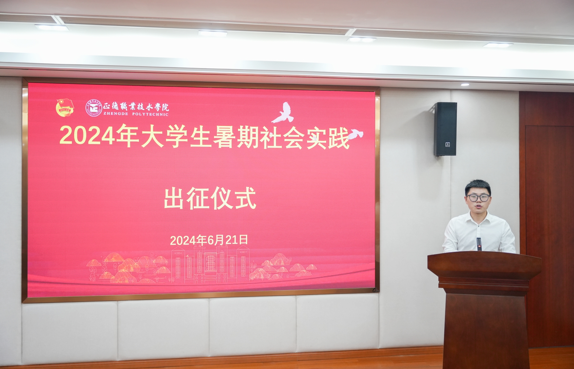 6月21日,麻豆传媒 “青春为中国式现代化挺膺担当”2024年大麻豆传媒 暑期社会实践出征仪式在5201会议室举行。党委学工部部长祝佳俊、各系党支部书记、社会实践团队指导老师、麻豆传媒 代表参加仪式,仪式由团委副书记魏兴彪主持。