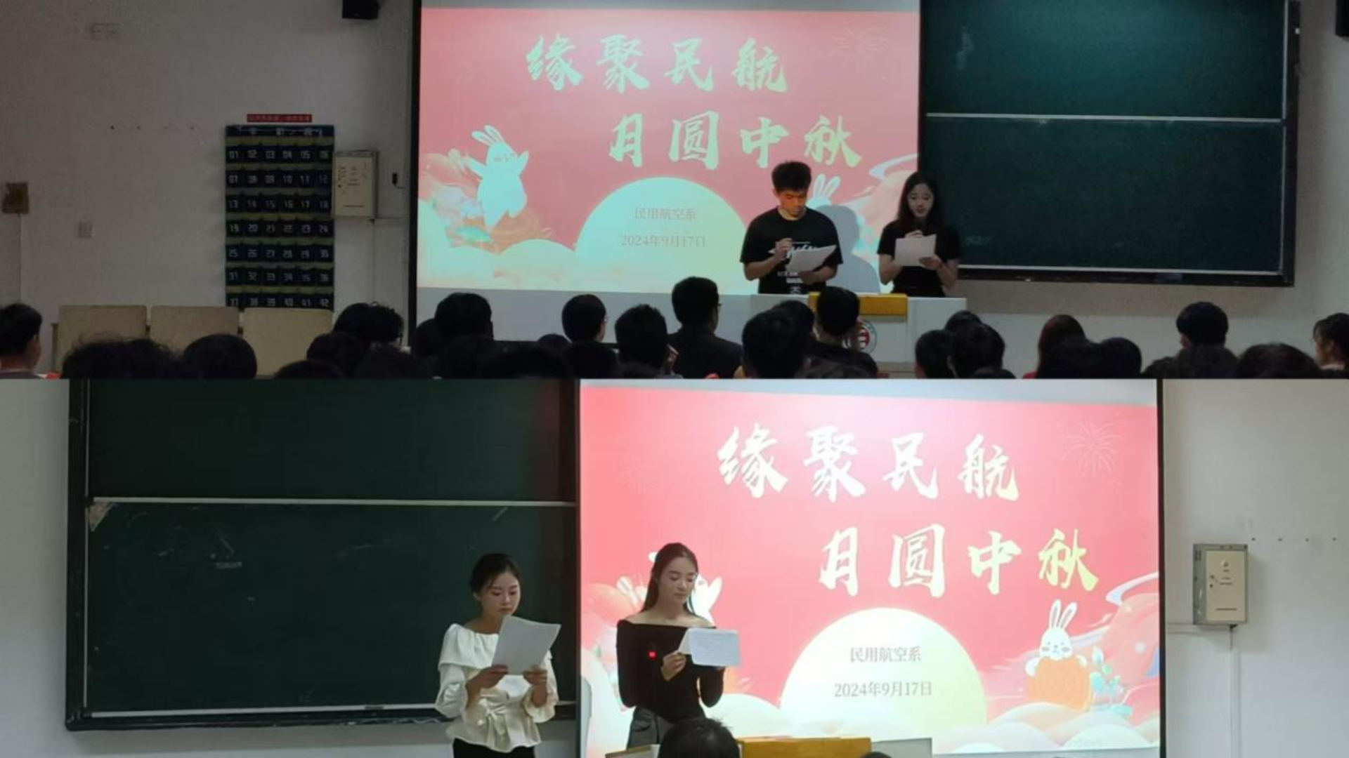 海上生明月,天涯共此时。中秋意味着团圆,节日代表着欢庆,民航系近300名新生在军训中度过此次中秋佳节。为了给新生们留下美好回忆,民用航空系于9月17日中秋当天晚18:30在1号教学搂1202、1203教室举办“缘聚民航 月圆中秋”主题新生联欢会。