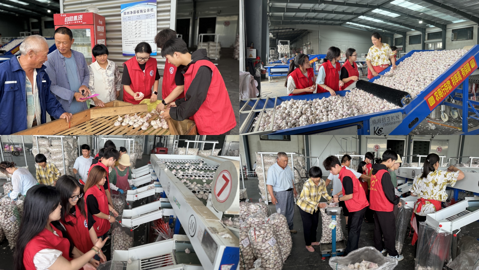 在田间地头,实践队成员与农民们并肩劳作,体验了大蒜的分选与搬运过程。他们小心翼翼地将一袋袋刚从地里挖出的大蒜进行分类,确保每一颗大蒜都符合企业的收购标准。阳光下,汗水浸湿了衣衫,但同学们的脸上却洋溢着满足与自豪的笑容。