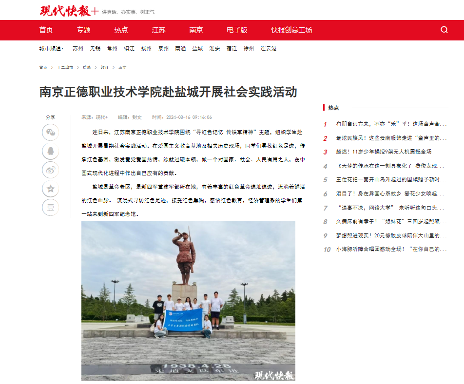 陈玺诺同学作为本次实践小分队的队长,在实践结束后积极向现代快报、紫牛等媒体投稿,宣传学经管系暑期三下乡活动。