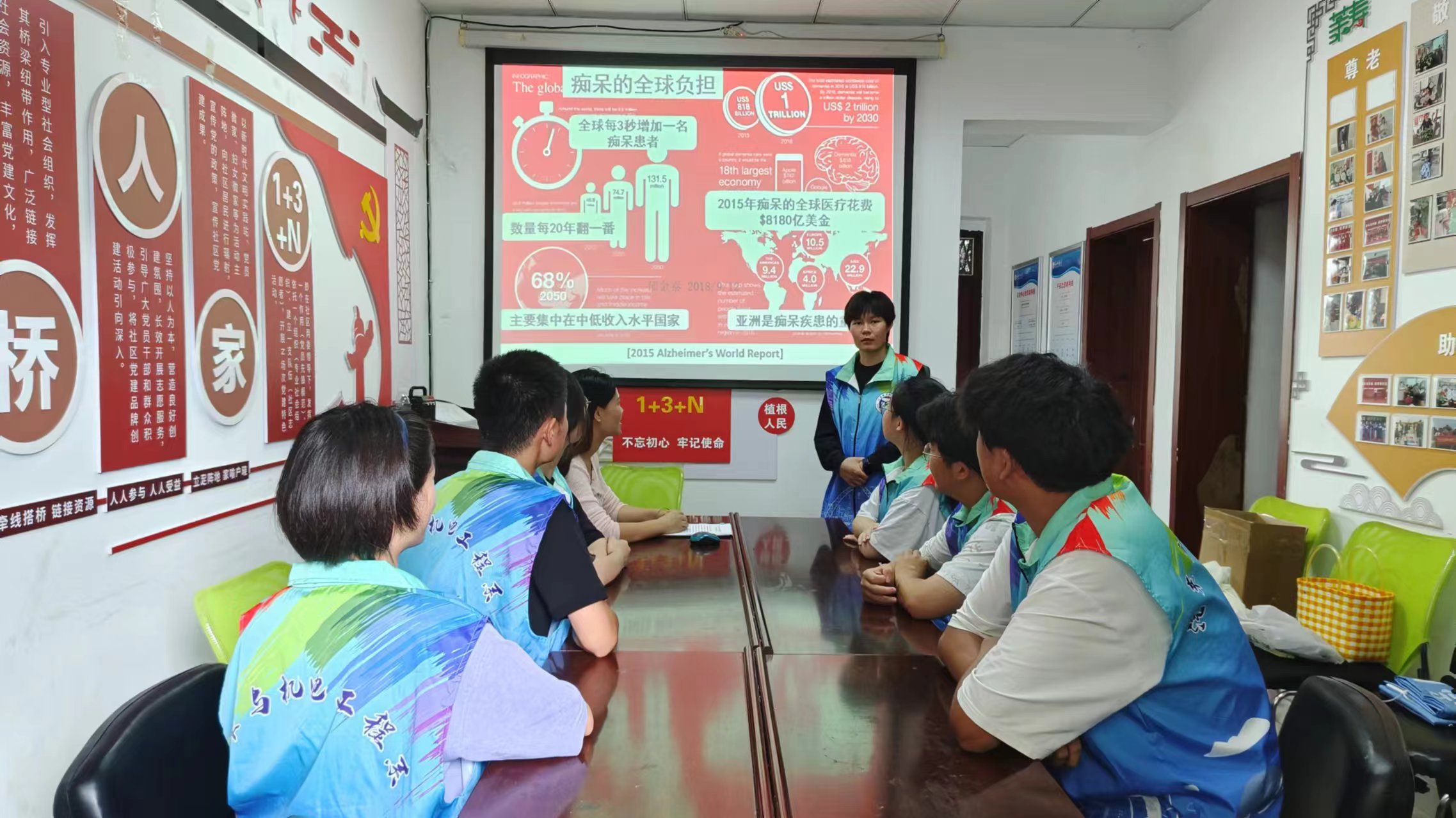 志愿者们在新时代文明实践中心活动室内,向农民科普关于阿尔兹海默症相关知识,劝解农民养成良好的生活习惯和健康的生活方式以降低患病风险。同时队员们也分享了很多预防阿尔兹海默症的方法例如:手指操、定期运动、健康饮食等。只有正确的认识病症才能做到更好的预防和保障。