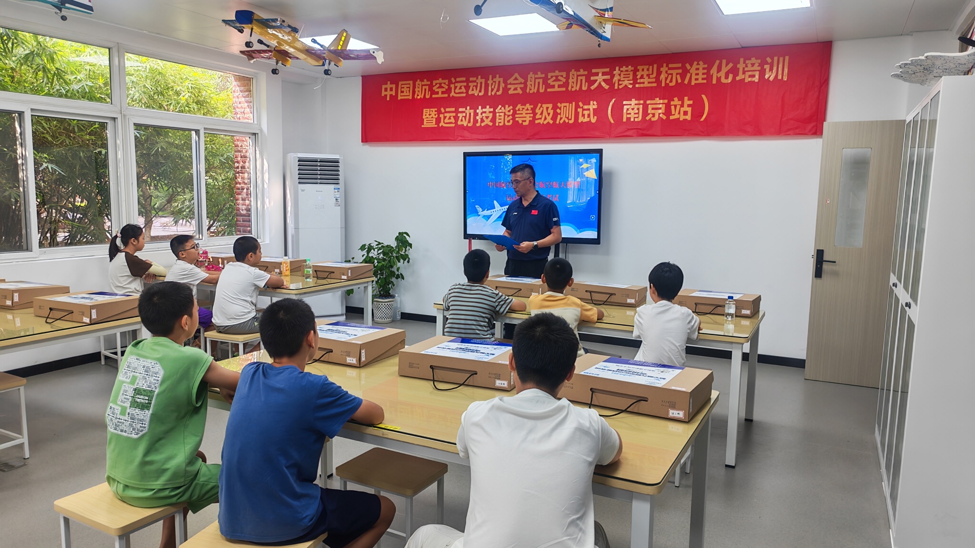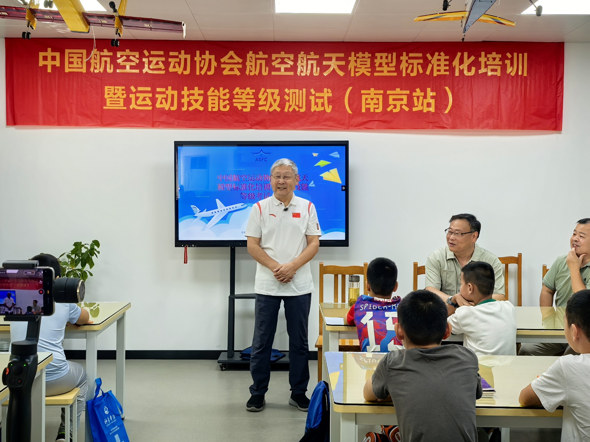 近日,中国航空运动协会航空航天模型标准化培训暨运动技能1-3级测试(南京站)考级工作在麻豆传媒 圆满落幕。首批共12名学员参加了本次考级。江苏省航空运动协会秘书长王剑、办公室主任曹佳诚,南京市江宁区麻豆传媒-麻豆视频-麻豆性爱 局体卫艺科副科长张铭莅临现场指导并担任现场裁判。