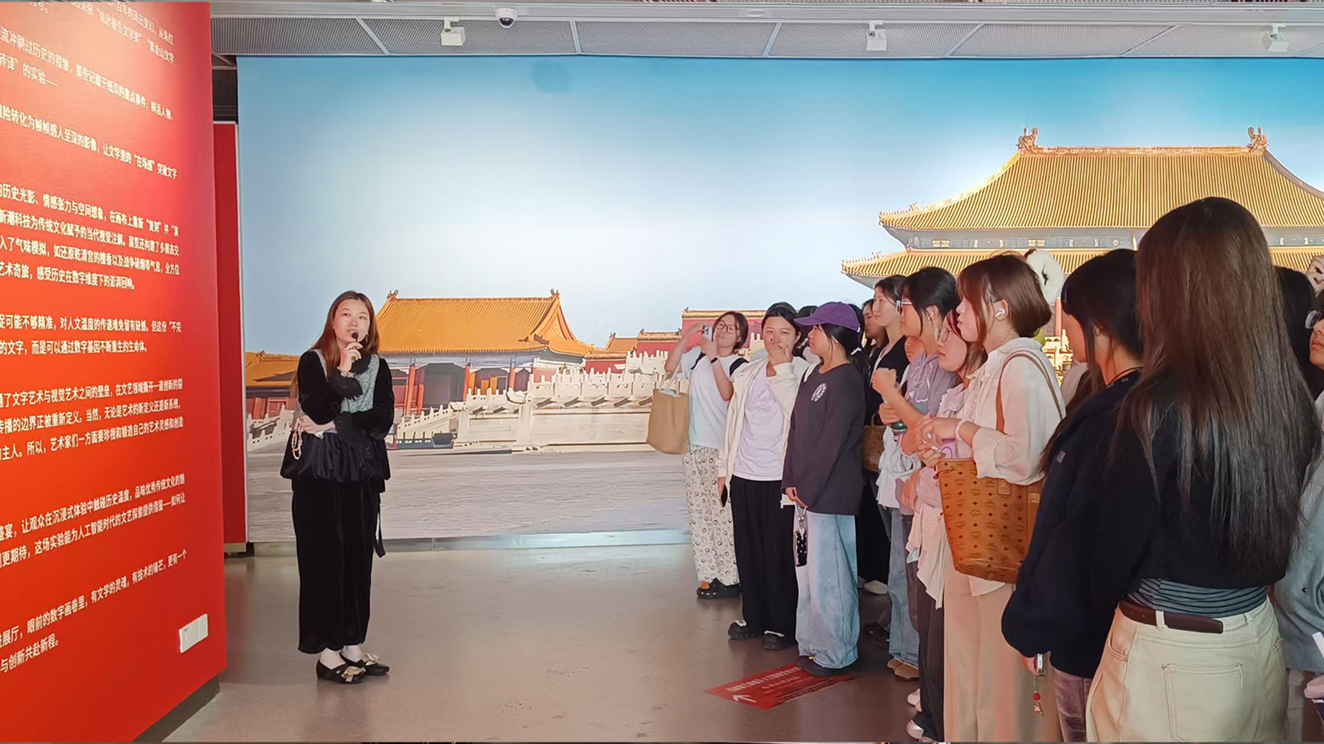 10月21日,艺术设计与建筑工程系数字媒体技术及动漫设计与制作专业240余名师生走进洋河文化艺术中心四楼洋河美术馆,参观《故宫三部曲》人工智能艺术大展,开启了一场科技与人文深度交融的沉浸式学习体验。