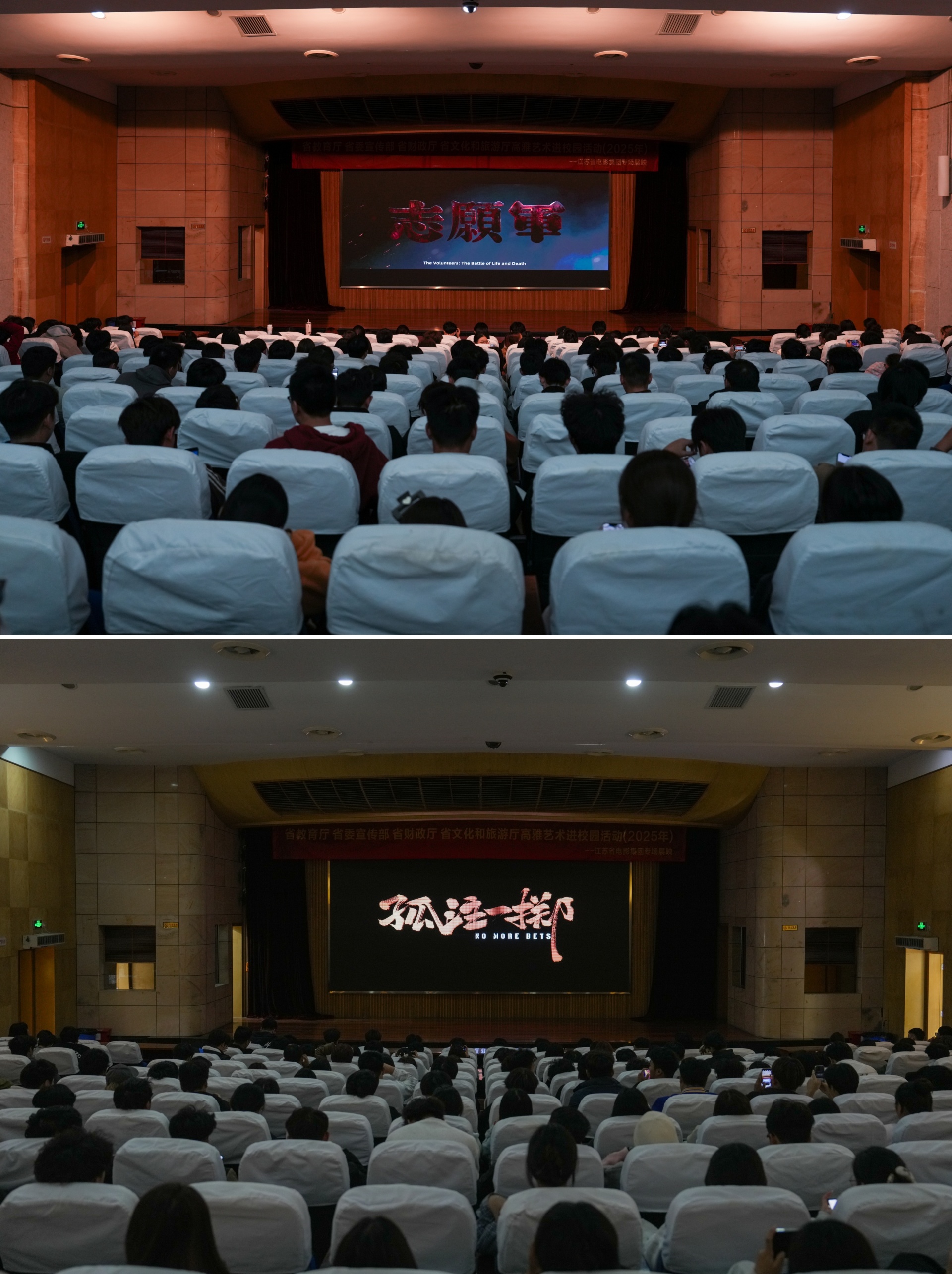活动当天,校园内洋溢着浓厚的文化氛围。随着大幕缓缓拉开,首先放映的《孤注一掷》以真实案例为蓝本,揭露境外网络诈骗的黑色产业链。影片中惊心动魄的情节与发人深省的警示,让现场师生深刻认识到网络安全的重要性。而随后上映的《志愿军:存亡之战》,则如同一部生动的历史教科书,将师生们带回了那个烽火连天的年代,共同见证了志愿军战士们在极端困难条件下,以血肉之躯筑起钢铁长城,捍卫国家尊严与和平的壮丽史诗。