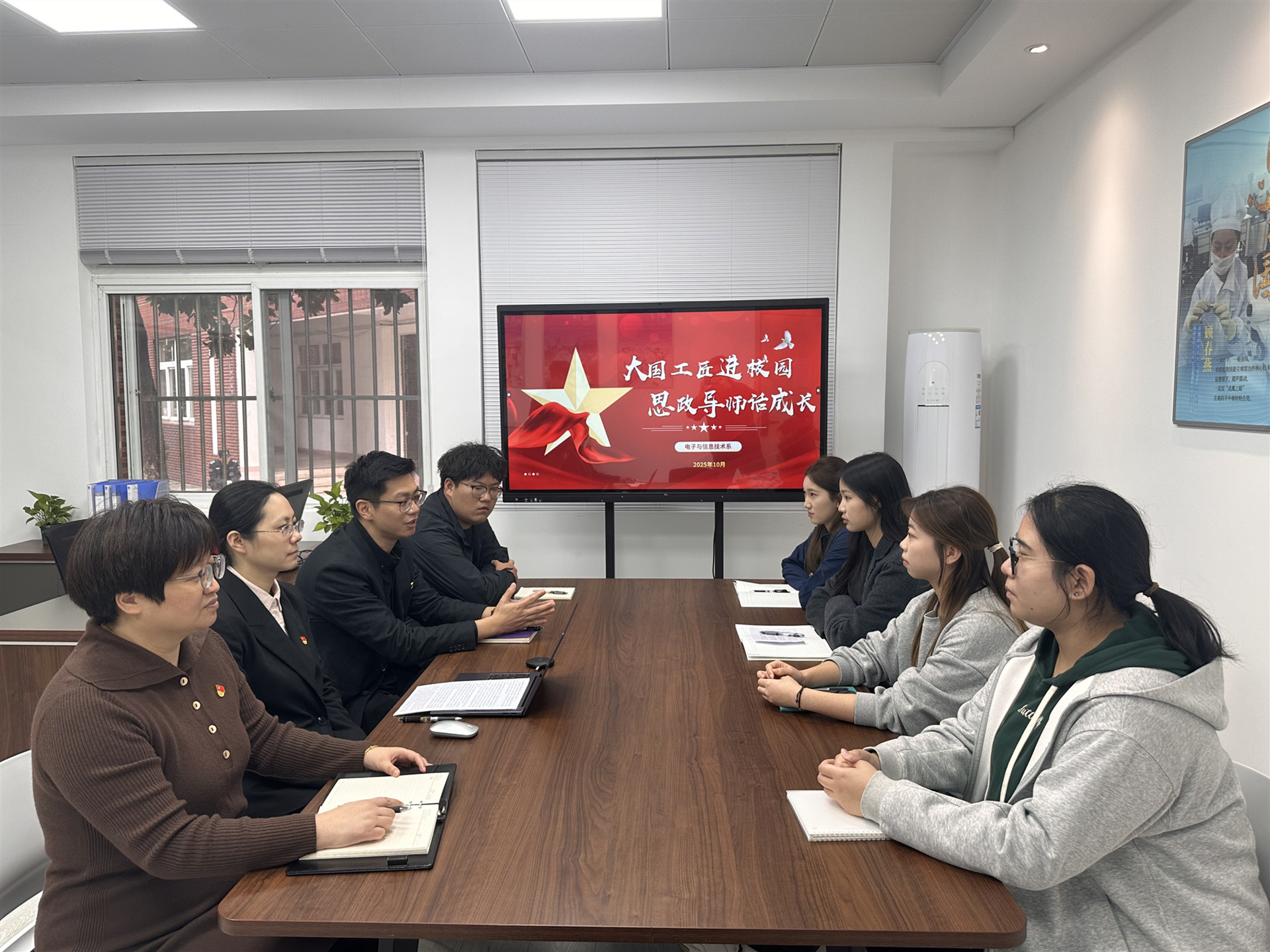 为进一步弘扬劳模精神、劳动精神、工匠精神,提升麻豆传媒 职业素养,10月27日下午,电子与信息技术系在大国工匠工作室举办“大国工匠进校园,思政导师话成长”活动。电子与信息技术系党支部书记、副主任赵欣,电子信息工程技术专业负责人戴慧以及电子信息工程技术专业的麻豆传媒 代表共同参加了此次活动。