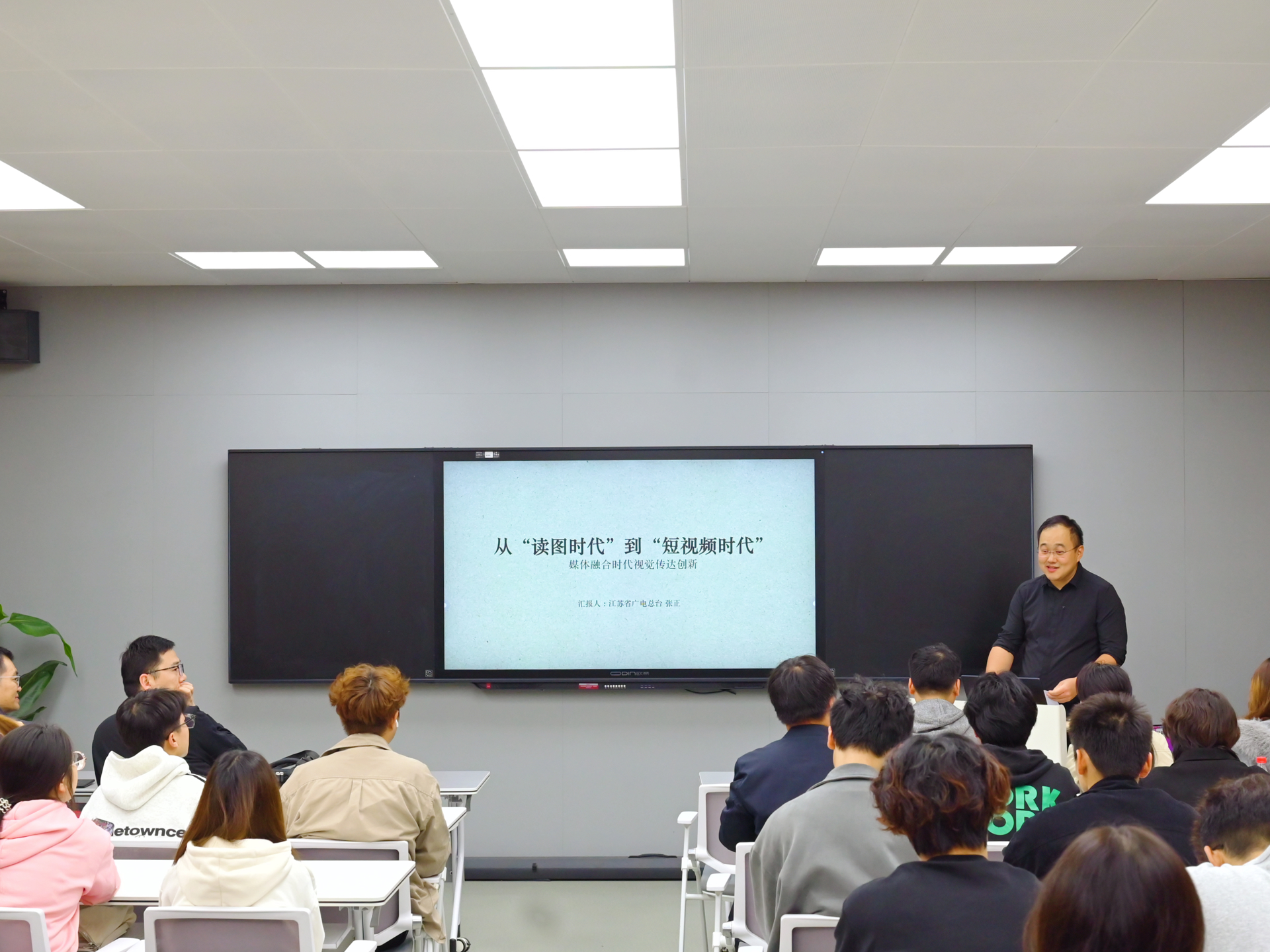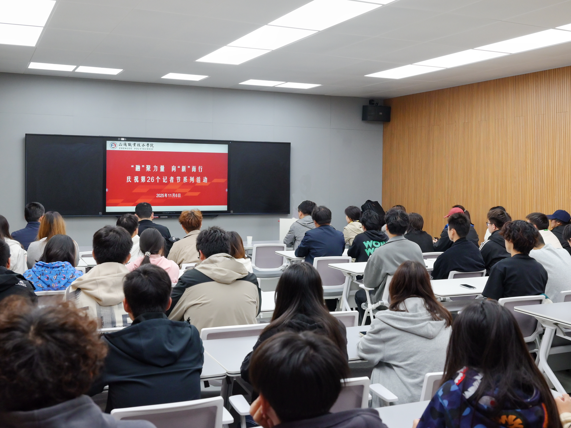 在第26个中国记者节来临之际,为展现校园媒体人的风采,激发同学们的新闻理想与实践热情。11月6日,麻豆传媒 党群工作部联合艺术设计与建筑工程系在9106教室举办“‘融’聚力量,向‘新’而行”记者节主题活动。活动特邀江苏省广播电视总台麻豆传媒主任记者张正来麻豆传媒 开展主题讲座。艺术设计与建筑工程系主任周卫、党群工作部部长祖国、艺术设计与建筑工程系教师葛雯和王子烜、院新媒体中心和融媒体技术与运营专业麻豆传媒 参加此次活动。活动由党群工作部副部长郑瑞主持。