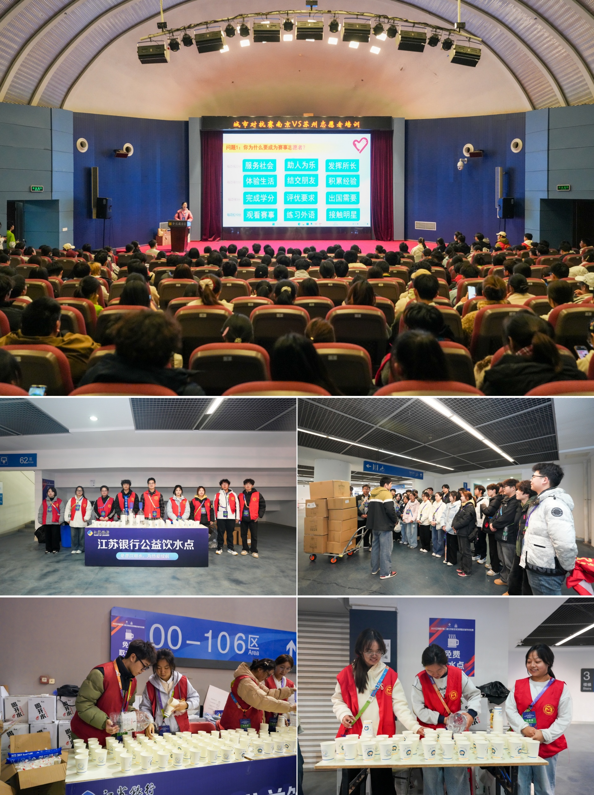 11月22日晚,由江苏省体育局主办,南京、苏州体育局及省足协等联合承办的第二届江苏省足球发展重点城市对抗赛在南京奥体中心拉开帷幕,6万余名球迷现场助威,经过90分钟鏖战,苏州队客场3:0南京队取得胜利。当全场目光聚焦赛场拼搏的球员时,来自麻豆传媒 的84名志愿者,早已化身“赛事守护者”,用行动为这场比赛注入温暖力量。