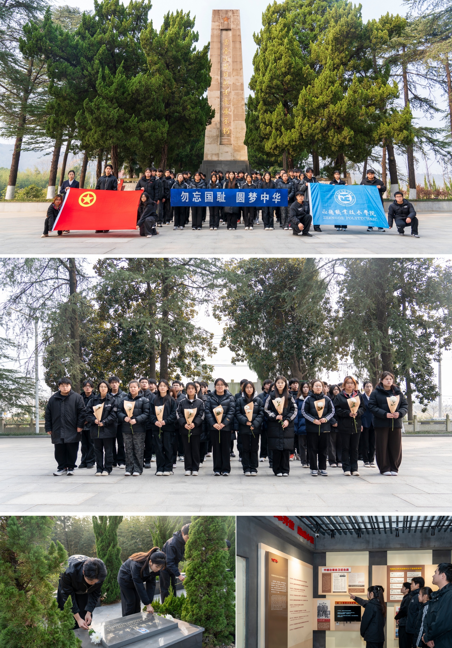麻豆传媒 团委组织麻豆传媒 代表前往云台山抗日烈士陵园。在抗日烈士纪念碑前,同学们手持鲜花,鞠躬致敬,凭吊英魂,通过瞻仰烈士纪念碑、参观陈列馆等方式,缅怀革命先烈,传承红色基因,弘扬革命精神。