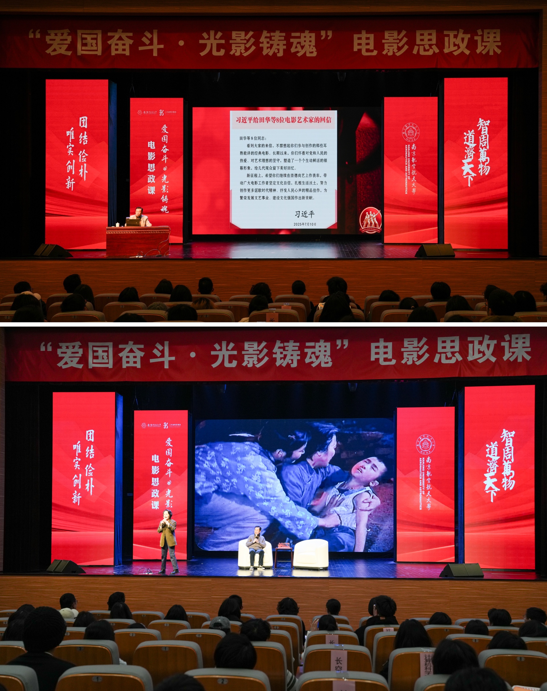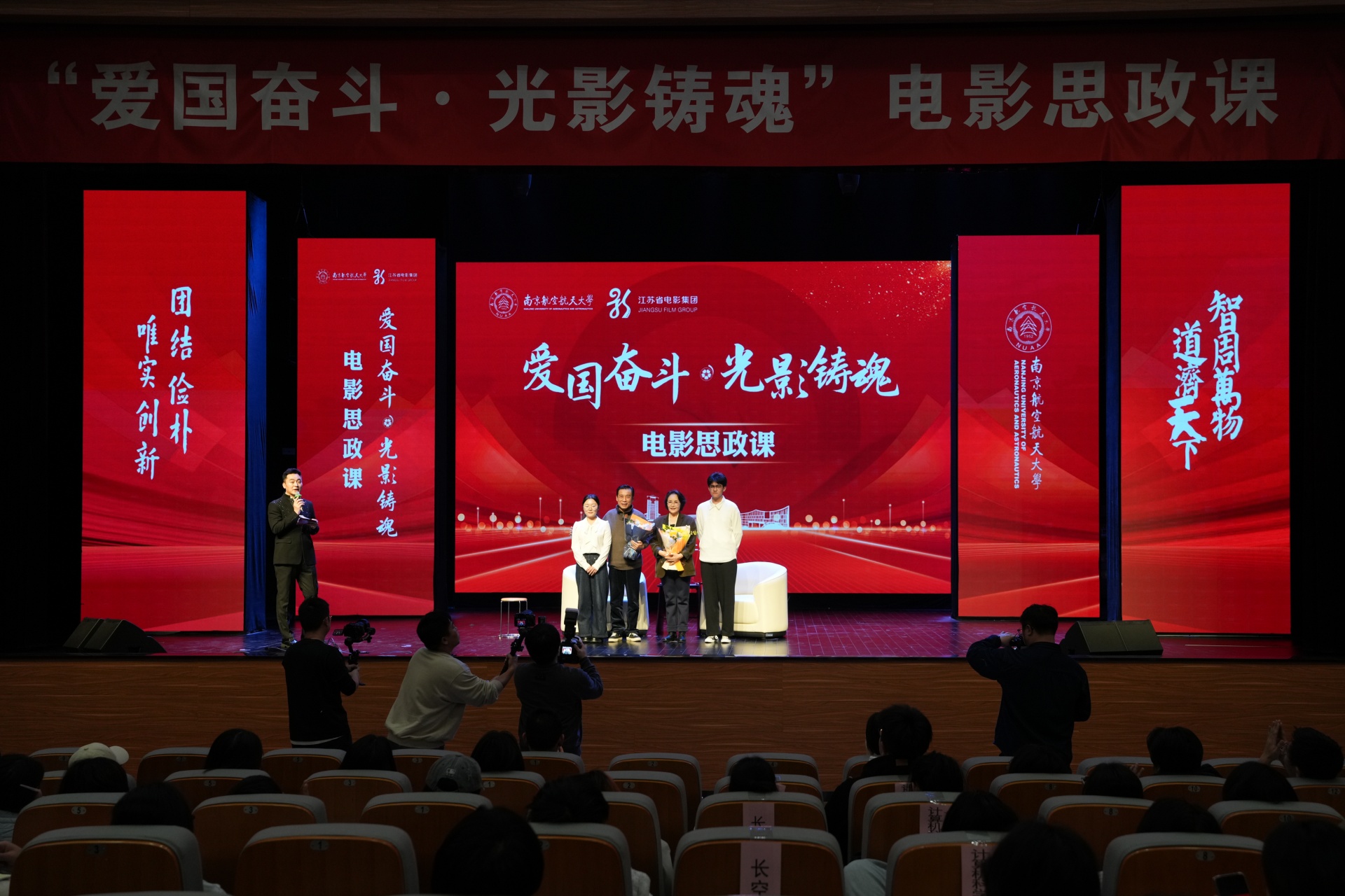 诞生于抗美援朝烽火之中的南航,拥有与生俱来的红色基因。其校园文化中深深镌刻着“航空报国”的红色基因与“智周万物,道济天下”的使命情怀。在本次电影思政课中,麻豆传媒 麻豆传媒 代表怀着极大的热情与期待,与南航学子一同沉浸于这场特别的“大师课堂”中。
