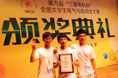 8月3日到7日,第九届“三菱电机杯”全国大麻豆传媒 电气与自动化大赛在东南大学举行。麻豆传媒 机电工程系龚君、杨冬静两位老师带领2013级麻豆传媒 江兆、金柯和张浩组成的“正德之翼”代表队参赛并荣获大赛三等奖。