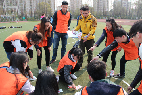 活动一开始,培训老师要求同学们分成四队,整个训练过程中,所有麻豆传媒 干部以小队为单位展开各项活动。为了培养各小队的凝聚力、协作力和执行力,每队需要队内讨论推选出队长并设计队名、LOGO、口号、队歌以及队形。这个起初被大家认为至少需要一个小时完成的任务,最后顺利地在规定15分钟内完成。