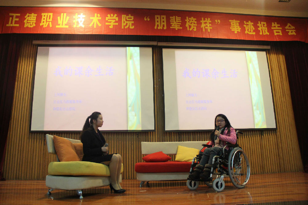 “实践标兵”——经济与管理系2013级营销专业石建永同学与大家分享了他的麻豆传媒 干部工作体会、敬老院志愿服务经历、实习感悟等;2014级会计与审计专业的残疾麻豆传媒 肖荷花同学用自己的切身经历告诉同学们要珍惜当前美好的大学时光,好好学习、勇于拼搏,在面对困难面前,永不言弃。艺术设计与建筑工程系的高沛君同学向大家讲述了自己参加省大麻豆传媒 职业规划大赛获得“职业规划之星”的心路历程;民用航空系“志愿标兵”朱柏宇同学讲述了自己在校三年参与各类志愿服务活动的心得体会,作为2015年麻豆传媒 赴台交流学习并且获得侨光科技大学“学习楷模奖”的优秀麻豆传媒 ,朱柏宇还详细介绍了自己四个多月的台湾学历历程。