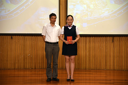 刘小廷副院长为一等奖获得者杨瑶同学颁奖
