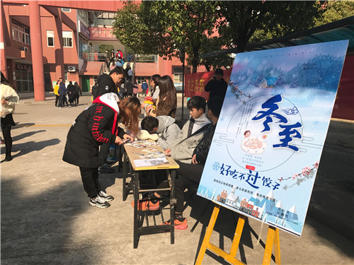 12月21日,农历“冬至”前一天,在食堂附近的宣传栏前,正梓轩文化社携手锦瑟汉服社举办了以“冬至将至,送予温暖”为主题的活动。