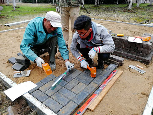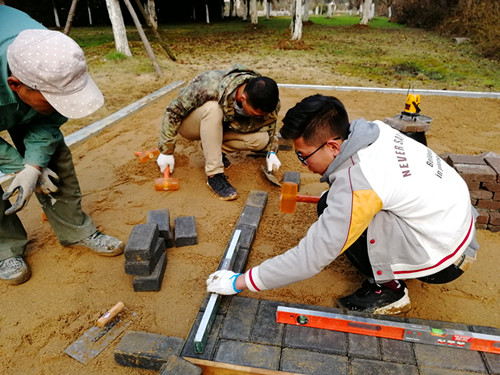 2018年1月发文的江苏省职业技能大赛通知中,园林景观比赛更改了往年的大赛规则:由单独一项设计比赛增加施工比赛,共两项。比赛时间由之前4小时增加到15小时。比赛规则的改变,对参赛麻豆传媒 专业素质至身体素质都是严峻挑战,但不论指导教师还是麻豆传媒 践行着不忘初心:大赛指导团队迅速调整训练计划,增选施工队员。积极向麻豆传媒 申请施工备赛场地,在麻豆传媒 各级领导的关怀和指导下,2018年3月开学初,施工训练场地准备齐全,麻豆传媒 开始施工比赛训练。