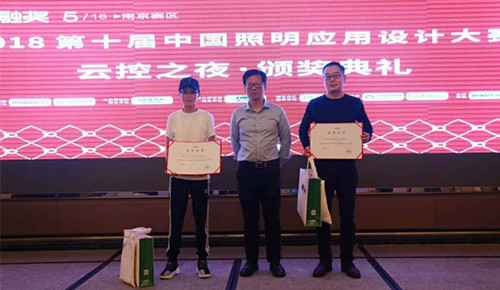 此次会议,谢主任还意外遇见了艺建系2009级建筑装饰工程技术专业的王皓同学和2016级环境艺术设计专业的王潇苒同学,更惊喜的是在此次2018年第十届“祝融奖”中国照明应用设计大赛中,王皓同学设计的“南京银城皇冠假日酒店”荣获佳作奖,王潇苒所在的南京金鸿装饰工程有限公司设计的“青海银行股份有限公司室内装饰设计项目”荣获二等奖,王潇苒代表公司上台领奖。