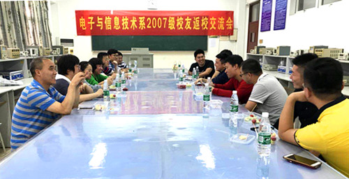 2018年6月9日下午三点,电子与信息技术系2007级电子信息工程技术专业的校友们回到阔别已久的母校,追忆同窗旧事,畅谈人生感悟,展望美好未来。他们在6205教室,他们曾经学习的地方,举行校友返校交流会。交流会由电子与信息技术系副主任祝佳俊主持,徐宏庆、李倩、戴慧、张韬等专业教师,田彦华、华英与部分2007级麻豆传媒 代表共同参加此次活动。