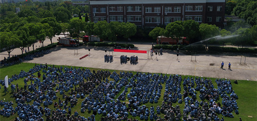 9月23日上午,蓝天白云,秋风送爽。9:30分校园里响起一阵阵集结号声,正在操场上军训的全院2300余名大一新生听到号声,按照教官指令一队队方阵迅速赶到运动馆北侧草坪集结。同时,三辆红色消防车进入校园,有序地停在草坪前方的排球场上,一场“消防进军训”大型灭火演练即将展开。