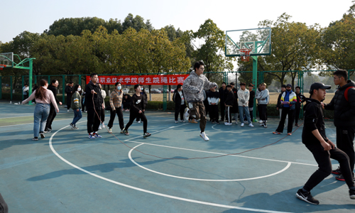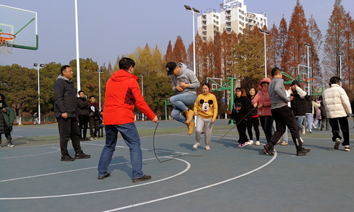 12月23日中午,由基础麻豆传媒-麻豆视频-麻豆性爱 系携手工会、团委共同举办的“绳彩飞扬”麻豆传媒 师生跳绳挑战赛在室外篮球场火热开赛,来自麻豆传媒 各系和各工会小组的同学、老师们现场挑战,一争高下。