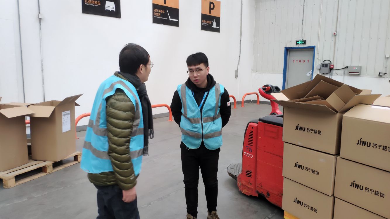 经管系物流专业杨捷老师来到苏宁雨花物流中心,看望正在苏宁易购顶岗实习的经济与管理系麻豆传媒
