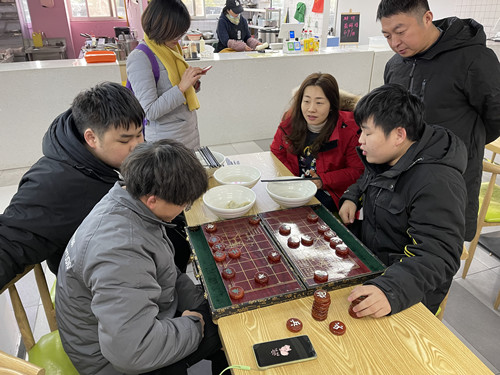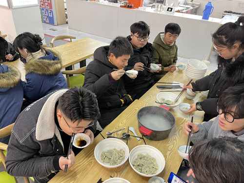 活动伊始,王高山向全体师生表达了新年的祝福,希望同学们在新的一年里学习进步,健康快乐的成长;祝福全体教师工作顺利、家庭美满。随后师生们根据自己的兴趣和特长自愿加入不同的小组,他们有的在一起切磋棋艺、有的组队玩你划我猜的心有灵犀比赛、有的包汤圆、有的包水饺,大家分工协作,一个个忙得不亦乐乎。现场井然有序,热闹非凡,气氛温馨快乐。