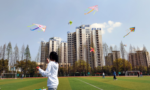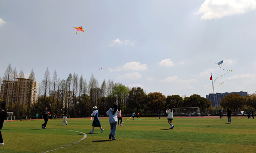 随着准备工作的完成,大家迫不及待地进行试飞。只见他们一手拿风筝,一手握线板,在操场上飞快地呐喊、奔跑起来,不一会儿,有经验的同学们便在天空中放起了第一批风筝。当然,有成功便有失败,不少同学的风筝刚刚翩翩起舞,随后便重重地落在地上,但大家并没有因此而放弃,请教他人,互帮互助,伴着风,跑起来,一次,两次,三次......直到风筝飞上蓝天。在蓝天的映衬下,各色风筝漫天飞舞,争奇斗艳,整个操场笑声、欢呼声不断,大家尽情的奔跑,拥抱春天,放飞梦想。路过的师生们也被这琳琅满目的风筝吸引驻足。