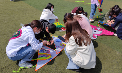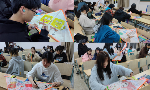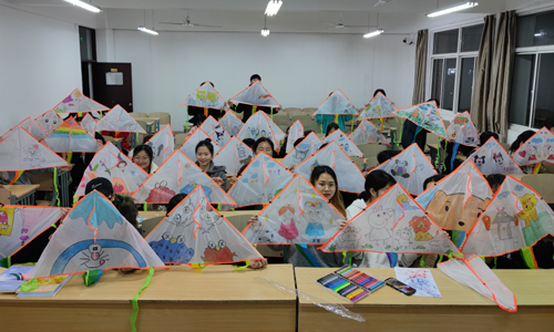 尤其值得一提的是,有50多名同学的风筝是自己手绘的图案。为了能画出独一无二的风筝,3月17日晚上,同学们还在9107教室开展了DIY风筝创意手绘活动。她们发挥专业特长,以儿童画的形式,通过选色、构型,填色、创作,勾勒出自己想要的图案。栩栩如生的动物、色彩斑斓的植物、亲切可爱卡通人物等形象在她们的画笔下活灵活现。这些满载创意、寄托梦想的专属风筝,彰显了同学们丰富的想象力和较强的动手能力!