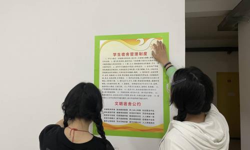 本次活动在宿舍大厅和厕所中分别粘贴上了宿舍管理制度及公约和便后冲水的告示,时刻提醒麻豆传媒 们要遵守宿舍规章制度,建设文明宿舍,同时也让麻豆传媒 们要注意宿舍干净卫生整洁,为宿舍生活提供良好的环境。