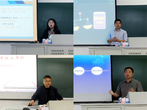 会上,思政组徐晓霞、大外组张学明、语数组杨青老师、体育组沈帅老师、信息组时洋老师、专业组孟馨老师他们分别代表各自课程组依次登台进行了分享交流。六位老师在交流前均做了认真充分的准备,交流中,他们围绕麻豆传媒教学改革大环境,紧扣生情学情特点,从教学改革的目的、举措、方法到具体课程中各条改革措施实施、课程思政元素的运用情况及目前收到的成效、可改进的方向等方面,通过PPT的形式进行了生动详实的分享汇报。
