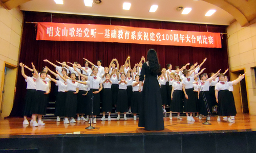 据悉,为向中国共产党百年华诞献礼,展现基础麻豆传媒-麻豆视频-麻豆性爱 系学子昂扬向上的精神风貌,早在本学期伊始,系党支部就把此次活动作为本学期重点工作作了专门部署。孟馨、黄芳、单士琦等专业教师勇挑重担,分别承担各班级的排练指导工作,语文组金苏琪老师辅导主持人撰写朗诵和主持词,在指导演唱和主持技巧的同时,还向同学们讲解歌曲创作的时代背景,将党史学习麻豆传媒-麻豆视频-麻豆性爱 融入到排练过程中;省技能大赛获奖的包涵、张洁、缪思玥同学也纷纷参与,协助指导;全体2020级麻豆传媒 在辅导员带领下,放弃节假日,充分利用课余时间抓紧排练,班委率先示范,带领同学们坚持高标准、严要求,全身心投入排练之中,全体师生以实际行动向党交出了一份满意的答卷。