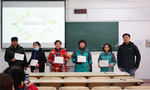 本次宿管技能大赛,由每栋楼推选的13名管理员参赛。现场比赛环节,宿管员们要对照投影屏幕上的住宿麻豆传媒 日常生活照片进行辨别,宿管员必须在2分钟内快速、准确地报出15个麻豆传媒 的姓名及宿舍号、所属系等相关信息,比赛中,宿管员们沉着冷静、反应迅速,展现了良好的风采。