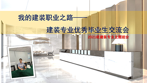 2022年的春天,对2021级建筑装饰工程技术的同学来说,是一段难忘的学习历程,一台电脑、一部手机以及宿舍里的书桌组成了大家日常主要学习小天地。为进一步激发同学们对专业的学习热情。在班主任冯显静老师的组织下,2021级建装班开展了一次特殊的主题班会,以网络直播的形式邀请了2008级建装专业的优秀毕业生陈子越师哥,与学弟学妹们一起进行了一次别开生面的专业交流会。