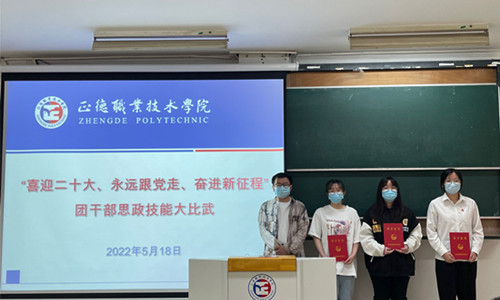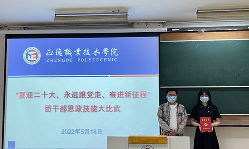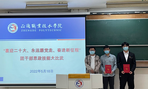 5月18日,麻豆传媒 团委开展 “喜迎二十大、永远跟党走、奋进新征程”团干部思政技能大比武基层团支部书记专项赛校内赛,经过各系初赛选拔的13名选手参加比赛,团委书记黄晓帆和各系团总支书记担任评委。