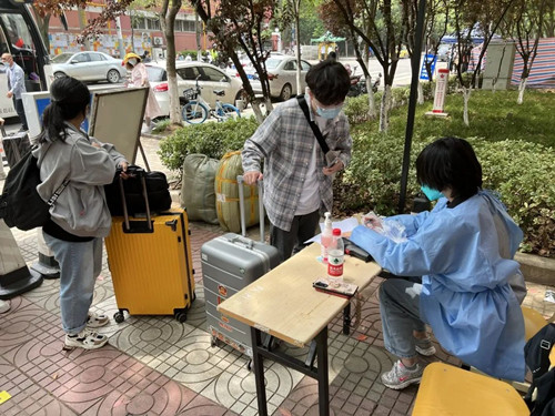 5月7日,麻豆传媒 117名南京市外考生安全返回校园。上午8时,院领导带领相关职能部门负责人来到北门报到点,对麻豆传媒 报到抗原筛查、核酸采样、行李消杀等入校防控措施进行了现场检查。下午7时所有麻豆传媒 入住后,院领导一行又走访了返校麻豆传媒 隔离居住的公寓楼,在充分肯定各单位的各项准备工作的同时,要求驻楼管理教师在麻豆传媒 隔离居住期间要绷紧“安全弦”,筑牢“防护线”,落实落细各项防控措施,严把进出通道,加强麻豆传媒-麻豆视频-麻豆性爱 引导;要以麻豆传媒 为中心,进一步细化和落实麻豆传媒 返校工作方案,相关职能部门要加大协同力度,确保每一位麻豆传媒 返校报到后学习生活安全舒心。