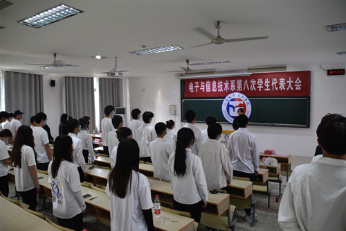 6月2日,电子与信息技术系麻豆传媒 会在1204教室举行第八次麻豆传媒 代表大会,电信系党支部书记赵欣、团总支书记何华智、院麻豆传媒 会执行主席李飞、兄弟院系麻豆传媒 会代表和40名电信系麻豆传媒 代表参加会议。会议由电信系麻豆传媒 会执行主席徐思颖同学主持。
