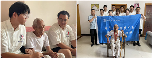 8月1日上午,正值建军节之际,实践小分队全体成员前往句容经济开发区看望95岁高龄的抗美援朝志愿军战士孙敦玉。老人将他的勋章展示出来并向小队成员们讲述抗美援朝的原因及意义,虽然当时他只有十九岁,在缺衣少食的严峻考验下,在崇山峻岭中,志愿军战士们奋勇向前,在如此恶劣的条件下,他们仍然奋勇向前,与天斗,与敌斗,以一往无前的意志,最终夺取了战争的胜利。孙敦玉老人用这样的故事告诉小队成员们,遇到困难时,不要害怕,要迎难而上,克服困难,坚持到底就是胜利。