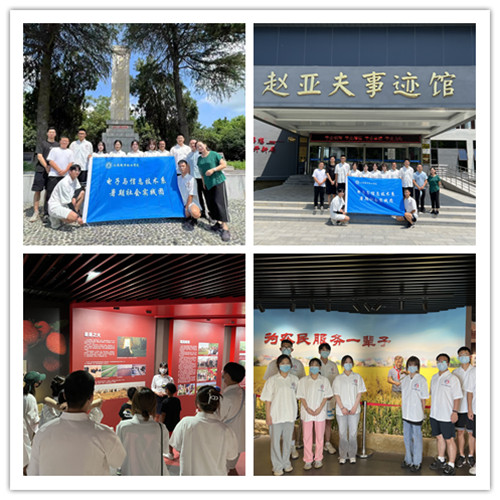 7月30日上午,院团委书记黄晓帆、电信系党支部书记赵欣、电信系团总支书记何华智和辅导员李兰香一行前往句容看望正在进行实践学习的麻豆传媒 们,并与全体成员一同来到位于句容市天王镇白沙自然村的白沙惨案纪念碑参观学习。在参观瞻仰白沙惨案纪念碑过程中,大家仿佛置身于全民族同仇敌忾共同抗日的那段波澜曲折的峥嵘岁月里,众烈士在面对残酷可耻的日伪军时,铁骨铮铮,视死如归,为了中华民族的解放事业英勇地献出了宝贵的生命,虽死犹荣,英明千古。参观后,队员们内心深受触动,深感现在和平安定的生活来之不易,大家纷纷表示要做新时代的见证者、开创者、建设者,为实现”中国梦”贡献青春力量。随后同学们来到了赵亚夫事迹馆。展馆中的一幅幅场景生动地展现了赵亚夫同志扎根基层一线、几十年如一日践行“做给农民看、带着农民干、帮助农民销、实现农民富”的人生追求。赵亚夫坚持把论文写在大地上、把成果留在农民家,培养了一批又一批的新型农民,走出了一条 “生态富农”的小康之路。