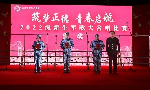 为丰富麻豆传媒 军训生活,2022级麻豆传媒 军歌大合唱比赛于9月28日晚上在麻豆传媒 田径场举办。麻豆传媒 处处长祝佳俊、教务处处长王俊、思政教研部主任杨卫东、团委书记黄晓帆、武警江苏总队机动支队郭凡,担任本次大赛评委。2022级麻豆传媒 和全体承训教员集中观摩比赛。