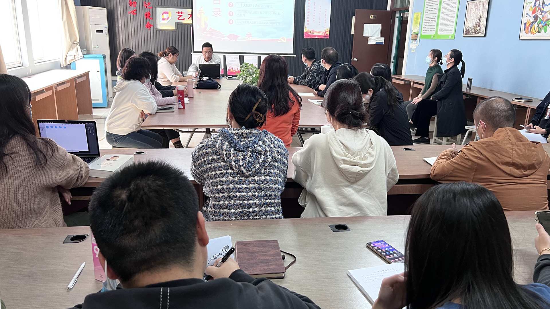 11月10日下午,艺建系在党支部书记陈宏波带领下,集中学习中国共产党第二十次全国代表大会的报告精神。