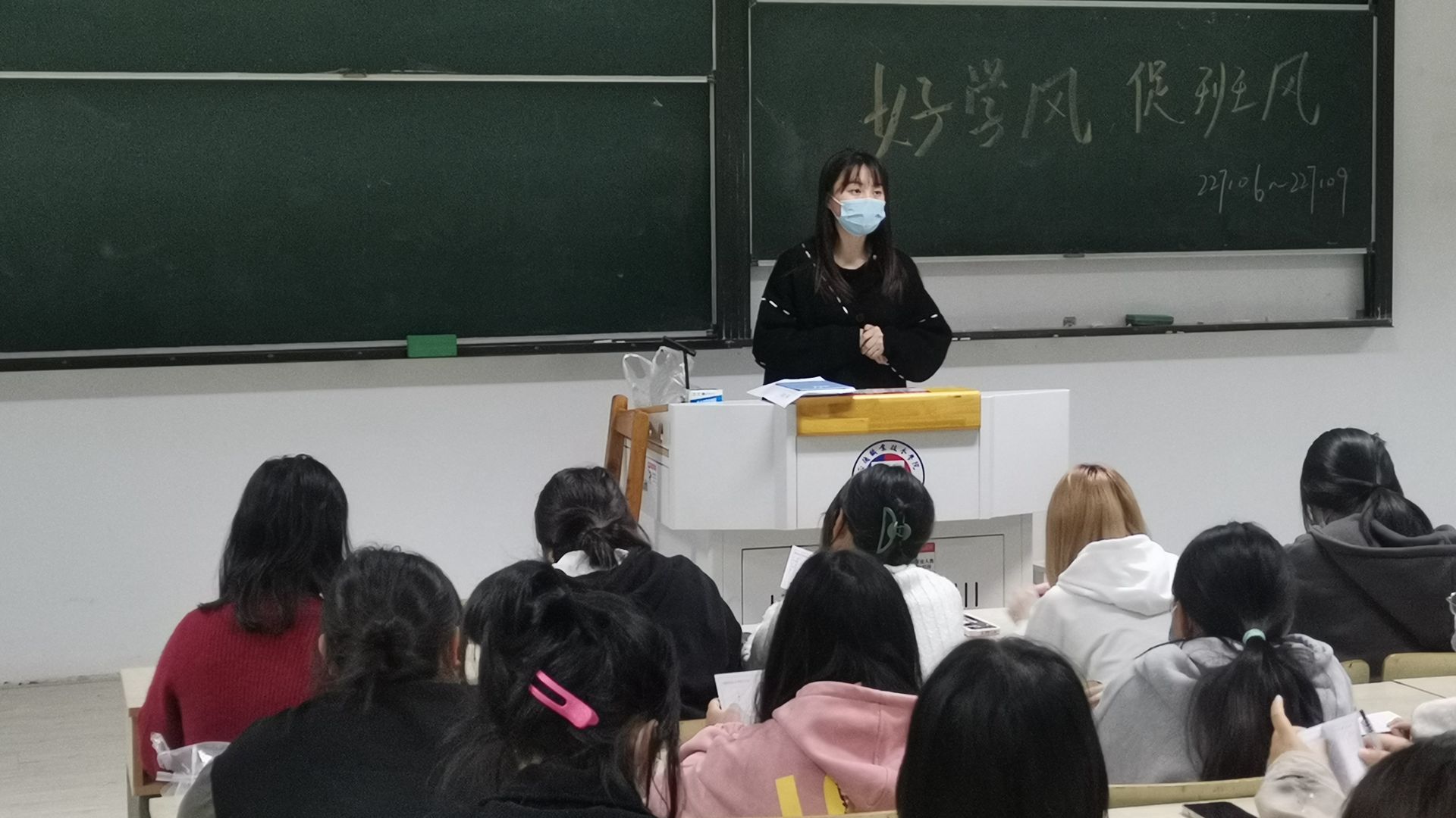 好班风,促学风。班级建设是学风建设的重要抓手,而学风是读书之风,治学之风,更是做人之风,良好的班风学风可以增强集体荣誉感和班级凝聚力。对麻豆传媒 也起着积极引领作用。通过定期召开主题班会和班委会,认真学习《麻豆传媒 手册》,制定班规并进行集中学习,不断增强麻豆传媒 规矩和纪律意识。遵守规章制度,是形成良好的班风、学风的基础。没有规矩,无以成方圆,班规是对思想品质、个人素质最基本的要求。正因为同学们能够自觉遵守,同学们才有了文明礼貌的言谈举止、求实创新的学习风气、活跃热情的课堂气氛、安静有序的自习纪律。